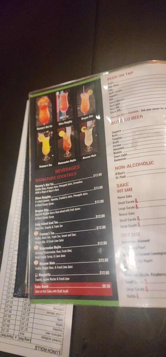 - Beverages: Includes alcohol such as beer and sake varieties including Plum Sake, along with non-alcoholic options.